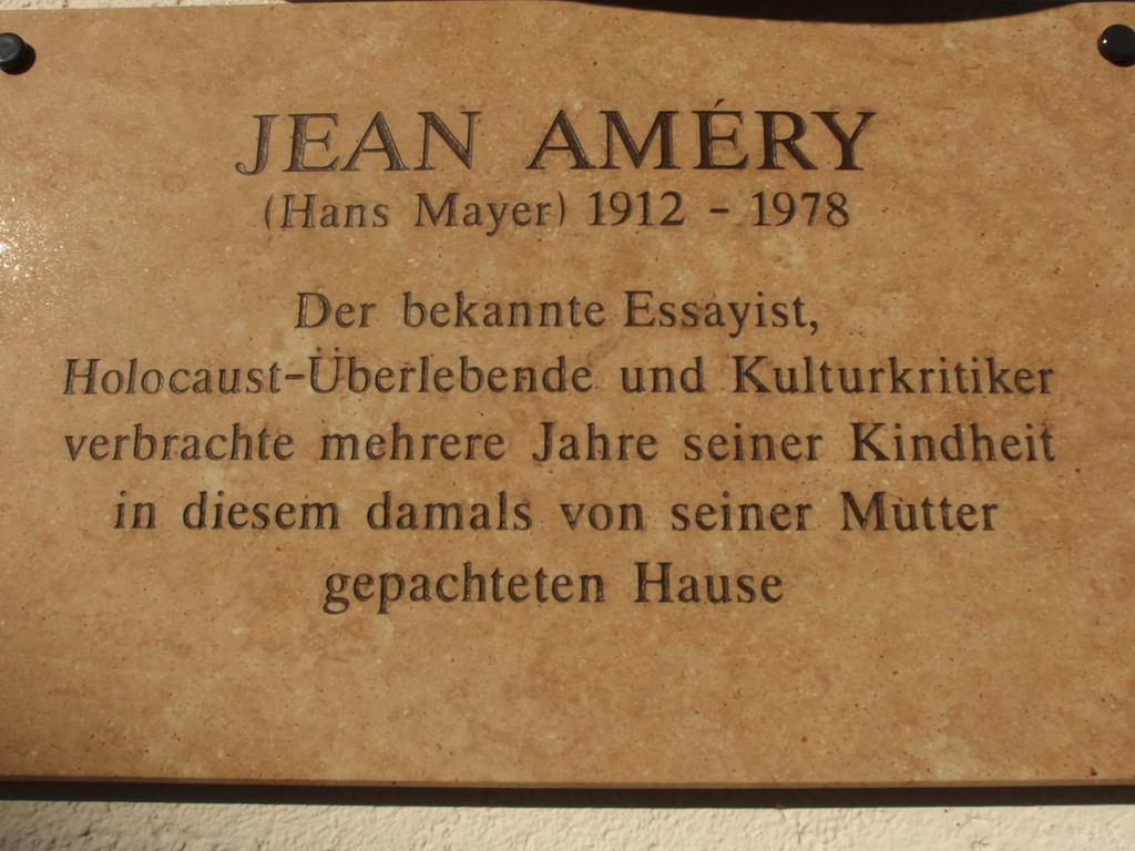 Univ.Prof. Dr. Hans Höller enthüllte im Rahmen des Projektes "Literatenspaziergang" am 29. Mai 2015 am Haus Eglmoosgasse 9 ("Stadt Prag") in Bad Ischl eine Gdenktafel an den Literaten Jean Améry